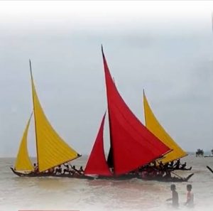 Nelayan menggunakan sampan berlunas dengan muat hanya dua orang saja dan sangat sederhana yang dimodifikasi menjadi sampan balap dengan layar lebih lebar.
