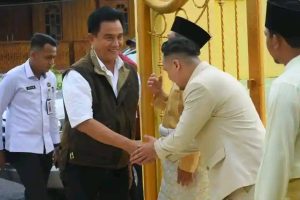 Ketua DPRD Kabupaten Lingga Maya Sari, S.Sos., M.Si bersama anggota DPRD lingga lainnya menyambut kedatangan Menteri Koordinator KumHam Imipas Republik Indonesia Prof. Dr. Yusril Ihza Mahendra, S.H., M.Sc di Pelabuhan Tanjung Buton Daik Lingga, Senin 27 Oktober 2025.