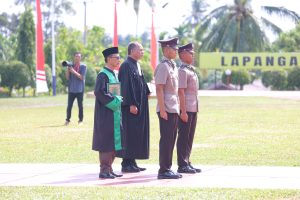 Upacara dipimpin langsung oleh Kapolda Kepri Irjen Pol Asep Safrudin, S.I.K., M.H., serta dihadiri Pejabat Utama Polda Kepri, Kapolres Karimun, Ketua Bhayangkari Daerah Kepri Ny. Detta Asep Safrudin beserta pengurus, Bupati Karimun, Ketua DPRD Kabupaten Karimun, Danlanal Karimun, Dandim 0317/TBK, serta unsur Forkopimda Kabupaten Karimun.
