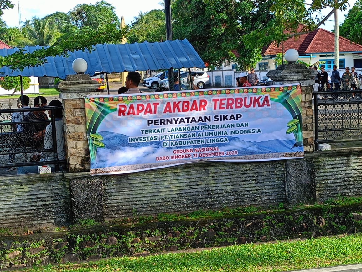 Pernyataan dukungan tersebut disampaikan dalam kegiatan yang dilaksanakan pada Sabtu, 21 Desember 2025, pukul 03.30 WIB . bertempat di Gedung Nasional Dabo Singkep. Kegiatan ini turut dihadiri langsung oleh Bupati Lingga, Kepala Kejaksaan Negeri (Kejari) Lingga, Kapolres Lingga, serta jajaran pemerintah daerah dan unsur terkait lainnya.