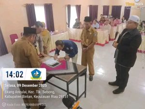 Setelah itu di lanjutkan penandatangan SK dan Berita Acara dari Kepala Desa Ekang Anculai Zaili Adi dan Ketua BPD Ekang Anculai yang di saksikan Plt Camat Teluk Sebong, Kasub Sektor Kecamatan Teluk Sebong, dan Tokoh Agama.fb