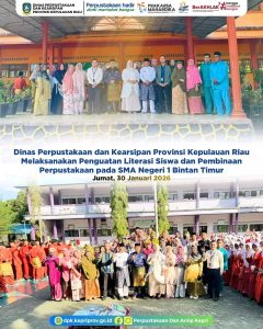 Kepala Bidang Pembinaan Perpustakaan Dinas Perpustakaan dan Kearsipan Provinsi Kepulauan Riau Raja Nazilah bersama pustakawan melakukan penguatan literasi siswa dan pembinaan perpustakaan di SMA Negeri 1 Bintan Timur, Jumat (30/1)
