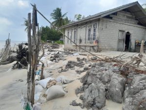 “Kalau ombak besar datang, rumah ini bergetar seperti mau runtuh. Kami tidur tidak tenang. Mau pindah pun tidak tahu ke mana,” ujarnya kepada media ini 16/1/2026.