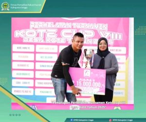 Ketua DPRD Kabupaten Lingga Maya Sari, S.Sos., M.IP serta Wakil Ketua II DPRD Kabupaten Lingga Muddasir Zahid, S.Ag menghadiri kegiatan Penutupan Perhelatan Akbar olahraga Turnamen Kote Cup VIII Desa Kote Tahun 2025 yang di laksanakan di Lapangan Sepak Bola Mahkota Gelamid, minggu (4/1/2026)”