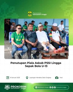 Wakil Bupati Lingga menghadiri penutupan Final Piala ASKAB PSSI Lingga Sepak Bola U-13 yang digelar pada Minggu, 18 Januari 2026 di Lapangan Merdeka Dabo Singkep.