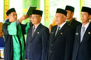 Dalam prosesi pengukuhan sumpah jabatan, Muhammad Amin membimbing para pejabat untuk mengikrarkan sumpah dengan penuh kesadaran moral dan spiritual.