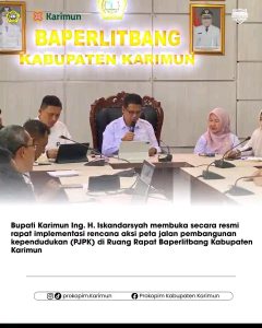 Bupati Karimun Ing Iskandarsyah membuka secara resmi rapat implementasi rencana aksi peta jalan pembangunan kependudukan (PJPK) di Ruang Rapat Baperlitbang Kabupaten Karimun, Rabu kemarin 3/3.