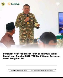 Dalam arahannya saat peresmian, Wakil Bupati menegaskan kepada seluruh Camat, Kepala Desa, dan Lurah se-Kabupaten Karimun untuk bergerak cepat dalam pencarian lokasi dan pembangunan fisik koperasi.