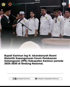 Kepengurusan Forum Pembauran Kebangsaan (FPK) Kabupaten Karimun periode 2025–2030 resmi dilantik oleh Bupati Karimun Ing H. Iskandarsyah, di Gedung Nasional.